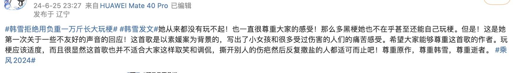 作为表演者,表演结束后她无需理会网络舆论,正如以往专注于自己,但没想到,她会在深夜及时阻止网友拿这首歌来玩梗。