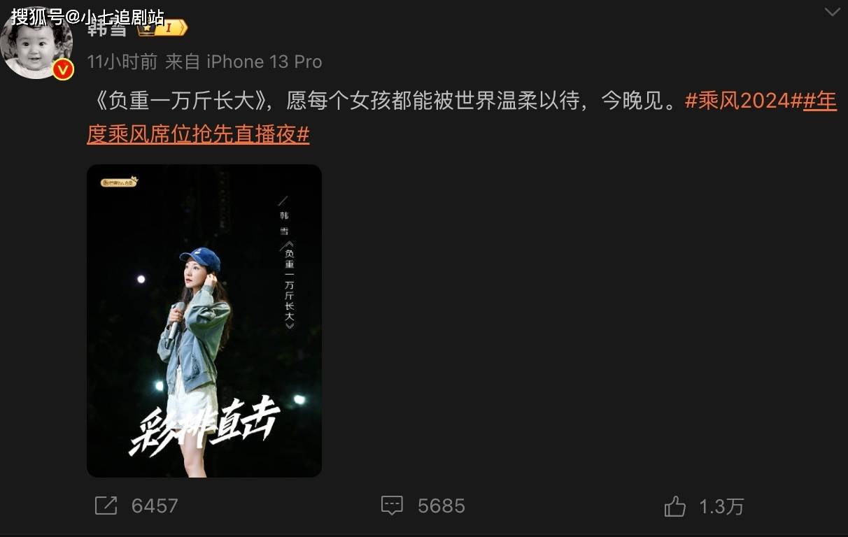 而是在乘风2024年度席位抢先直播夜演唱的《负重一万斤长大》。
