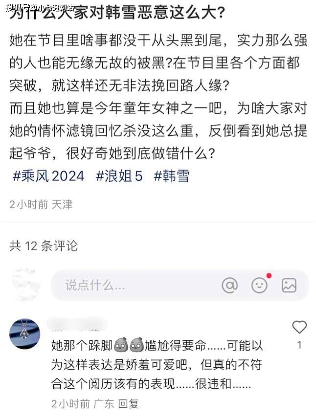 这位网友说:她那个跺脚尴尬得要命……可能以为这样表达是娇羞可爱吧,但真的不符合这个阅历该有的表现……很违和……