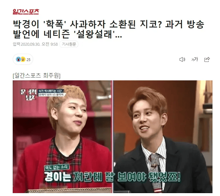 同样是歌手,也同样参与过校园暴力的朴经承也说过,他小时候很羡慕ZICO所在的“囤货”(跟小混混团体差不多),看起来很帅,想成为其中的一员。