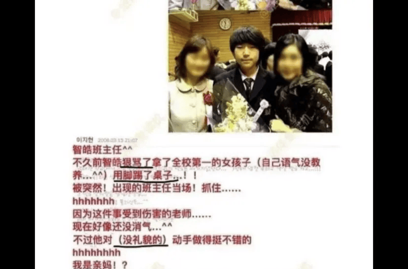 ZICO的妈妈还曾经在网上炫耀,他在念书期间曾经霸凌一位女同学(还是考了全校第一的女生),理由是ZICO觉得女同学说话的语气没礼貌。