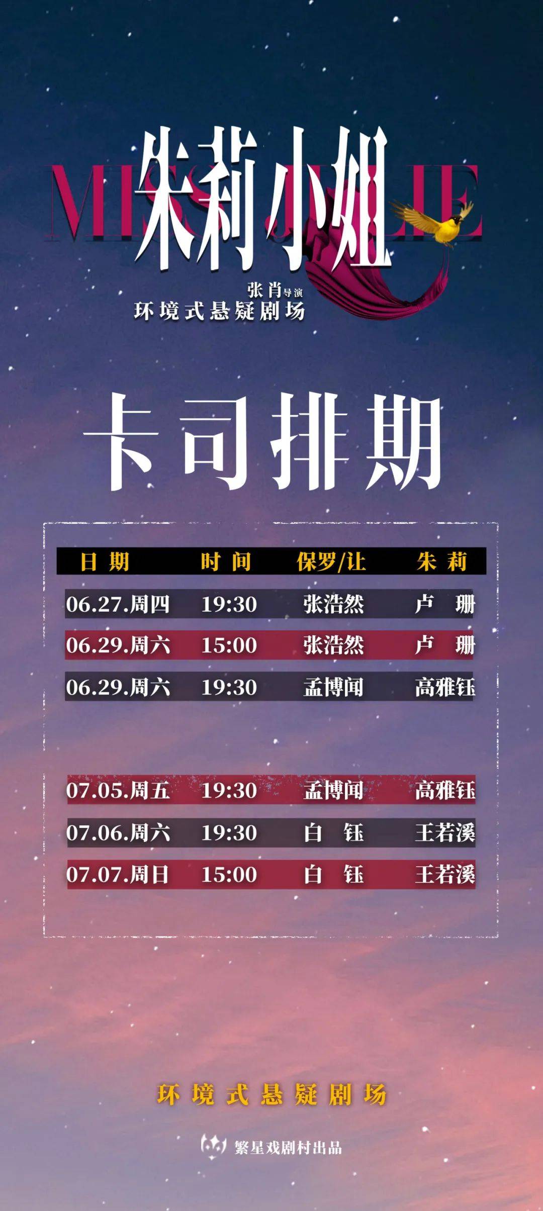 闺蜜推荐,来看《朱莉小姐》啦。碰到了演技超好的两位演员,运气不错嘞,被疯狂圈粉!很沉浸、很投入、很好看,还有回味感,座椅还舒服。好看!推荐!希望白钰和王若溪两位演员发光发热!