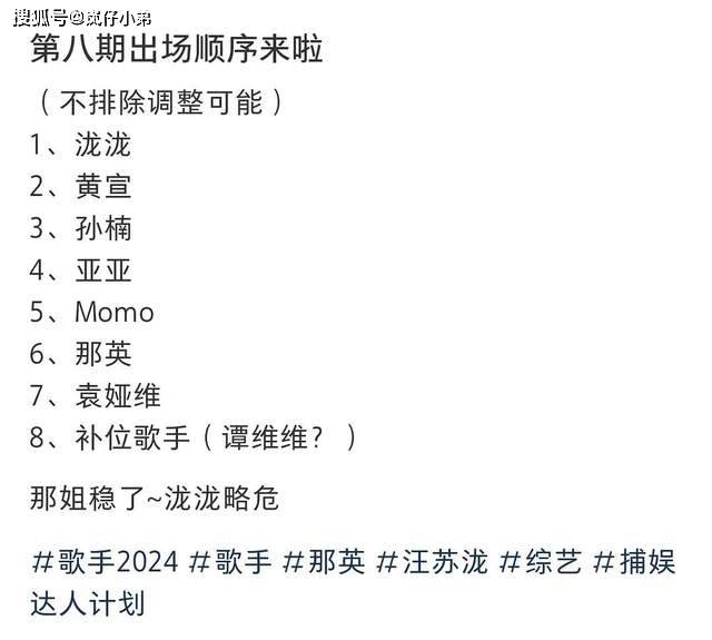 目前,据知名娱乐博主爆料,关于第八期各位歌手的出场顺序也正式曝光,分别是: