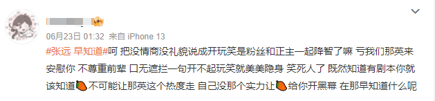但是在后台的张远,却因为言论问题被吐槽没情商。