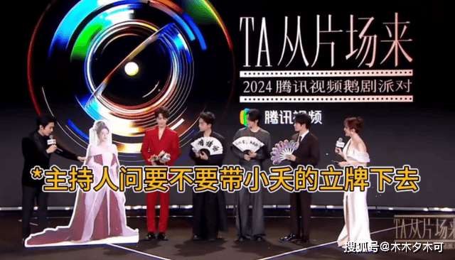 在采访环节快要结束的时候,主持人再一次cue到杨紫的人形立牌,问他们四位要不要带着小夭一起下去?结果四个人没一个动手,自己就下去了,不过檀健次是因为要留在台上继续宣传下一部剧,所以不下台,但邓为,张晚意,王弘毅三人也只顾自己下台,最后杨紫的人形立牌还是工作人员帮忙拿下去的。