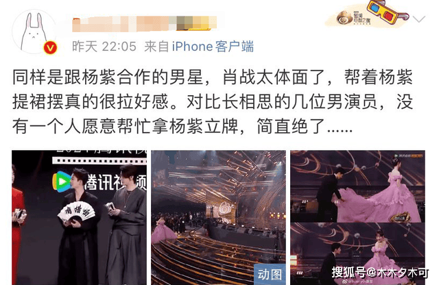 网友们还对比了肖战之前对杨紫的态度,参加活动时跟在杨紫身后帮忙提裙摆,全程都照顾着杨紫,非常绅士,并不会像这几位一样对着一个女演员如此冷漠。