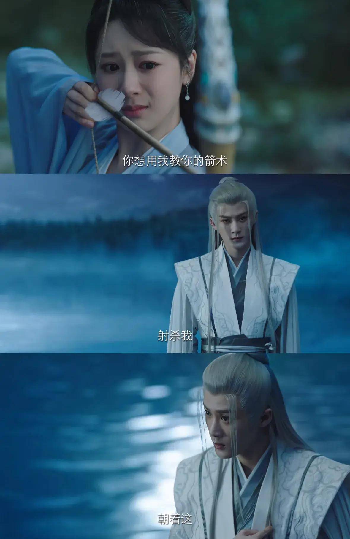 相比相柳吐血的直接冲击,更虐的是细节里的刀:小夭持剑欲射杀相柳时,乌黑的秀发,已有花白之势。