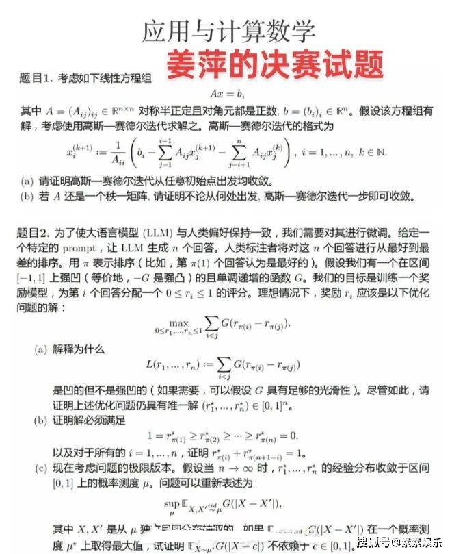 关于题型的难度,此前数学委员会就已经明确此次考试的难度是相当于数学系的博士资格考试,题型复杂且难度大。