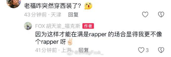 还表示“不知道这次大魔王的舞台在大家看来算不算diss!表示自己穿西装才能在满是rapper的场合显得不是rapper。”