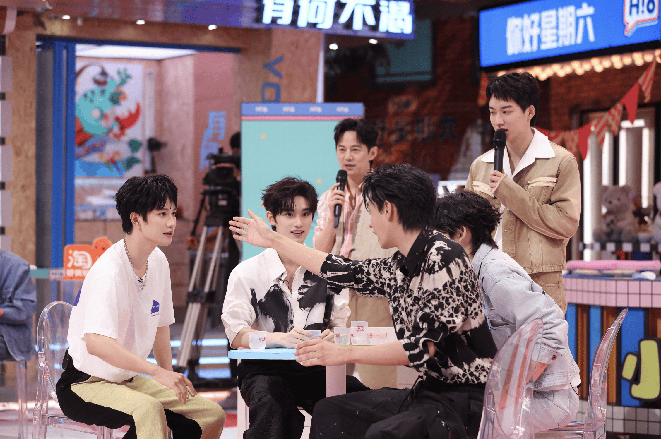 丁程鑫敖子逸VS王琳凯秦霄贤泼水上头秦霄贤“害人终害己”王琳凯上演帽子戏法 丁程鑫敖子逸合唱TFBOYS《大梦想家》来到“321看这边”环节,丁程鑫、敖子逸与王琳凯、秦霄贤展开激烈的泼水混战。值得一提的是,本期正值秦霄贤录制《你好,星期六》第一百期的时间节点,丁程鑫放狠话,让秦霄贤遇水则发、全面开花。王琳凯虽然是新手但游戏能力满分,敖子逸和秦霄贤更是越玩越上头。