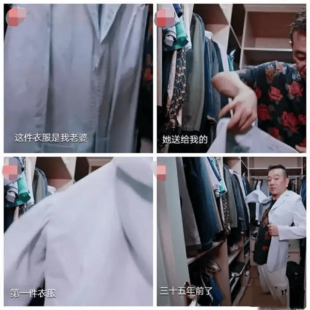 张晨光还对工作人员展示了自己的衣柜,里面有很多老旧的款式,其中一件是妻子送给他的,距离当时都已经35年前了。