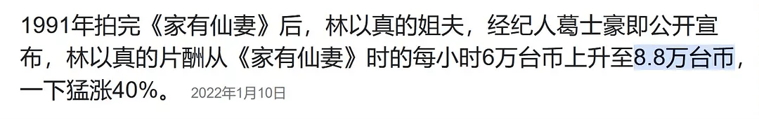 而1991年林以真的片酬总共是1000万台币以上,换算下来也有200多万人民币。