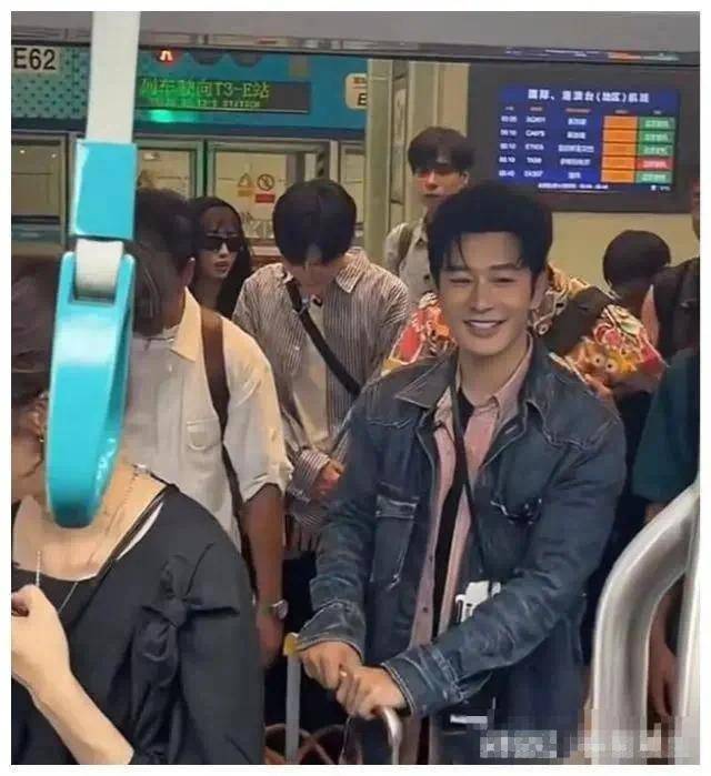 当天黄晓明推着行李箱,他身穿牛仔外套内搭粉丝衬衣,虽然已经 46 岁,但状态却维持得相当好,皮肤白皙,面容十分精致。被粉丝认出后,对方叫了一句黄教主,黄晓明挥手和对方打招呼。