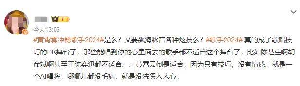 有人说她唱歌像AI,哪里唱的都没有毛病,就是没法让人产生共鸣。