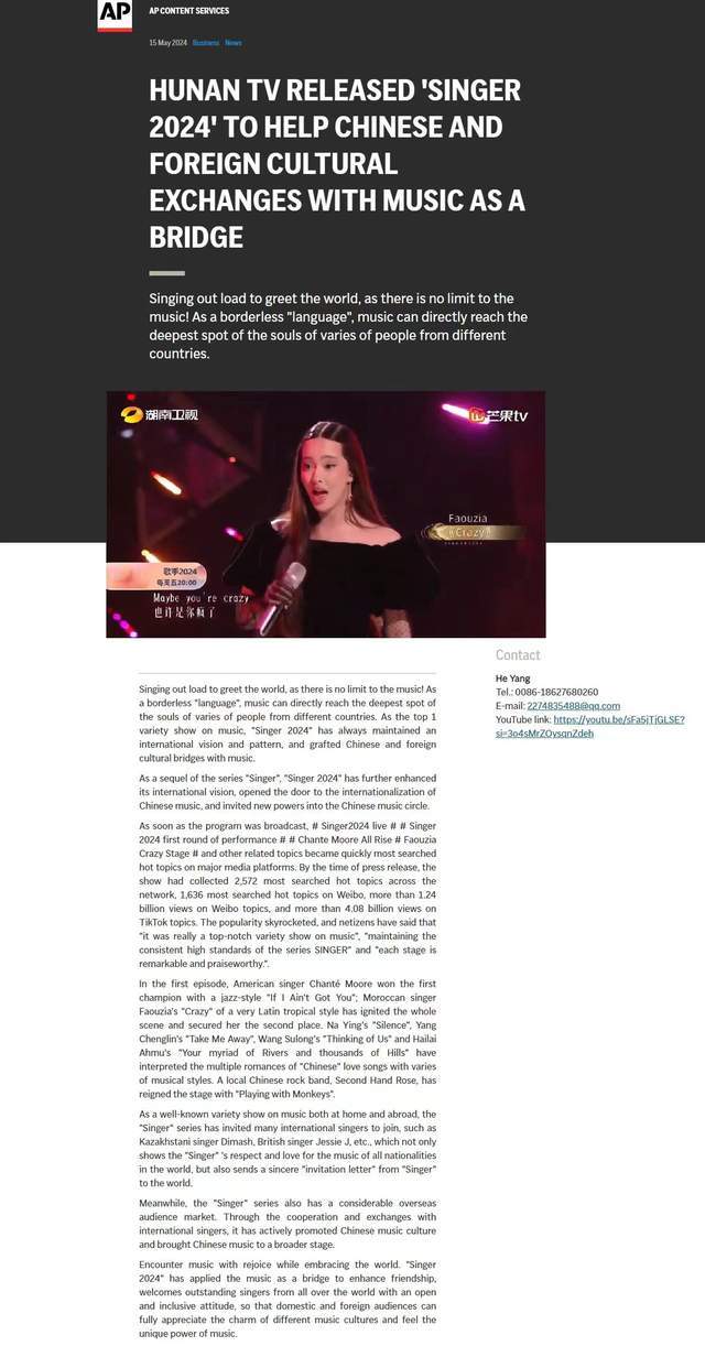 一、全球聚焦《歌手2024》 中国音综高歌“出海”