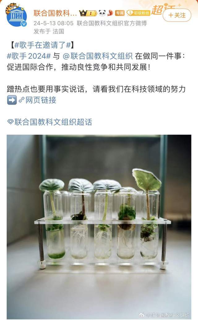 (联合国教科文组织在其微博账号推荐《歌手2024》截图)
