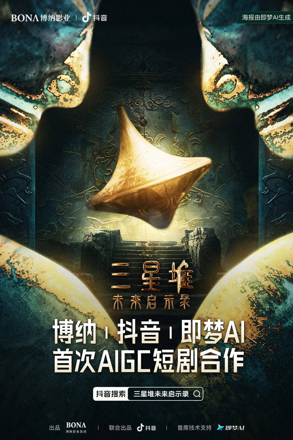 6月17日,上海国际电影节期间,由博纳影业AIGMS制作中心出品制作,抖音联合出品的AIGC科幻短剧集《三星堆:未来启示录》亮相“博纳25周年‘向新而生’发布会”。作为首席技术支持,即梦AI为该剧提供生成式人工智能技术支持。该剧第一季共12集,由抖音联合出品,将在抖音短剧暑期档播出。此次合作是传统影视公司与AIGC视频产品首次联合开发AIGC科幻短剧集。