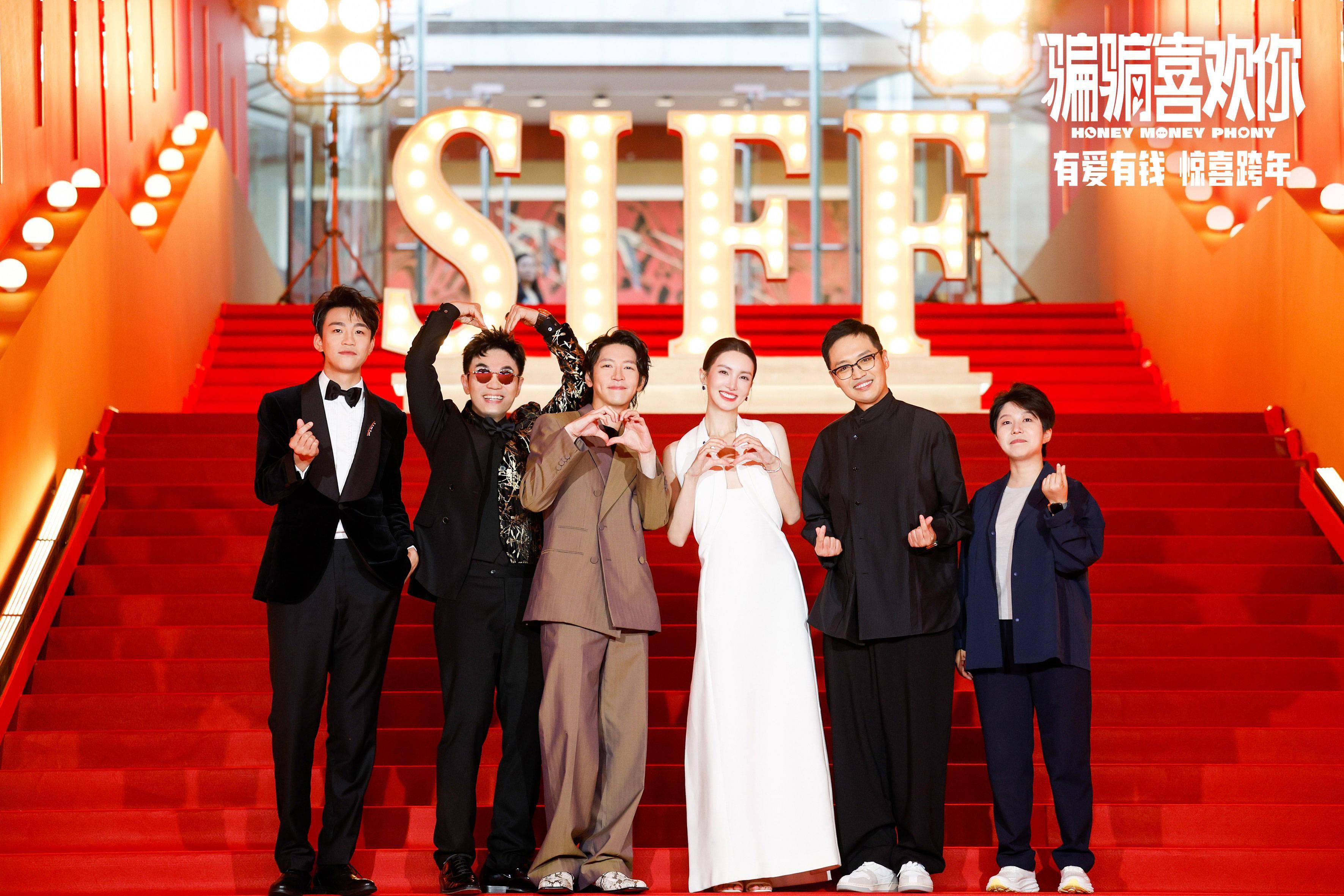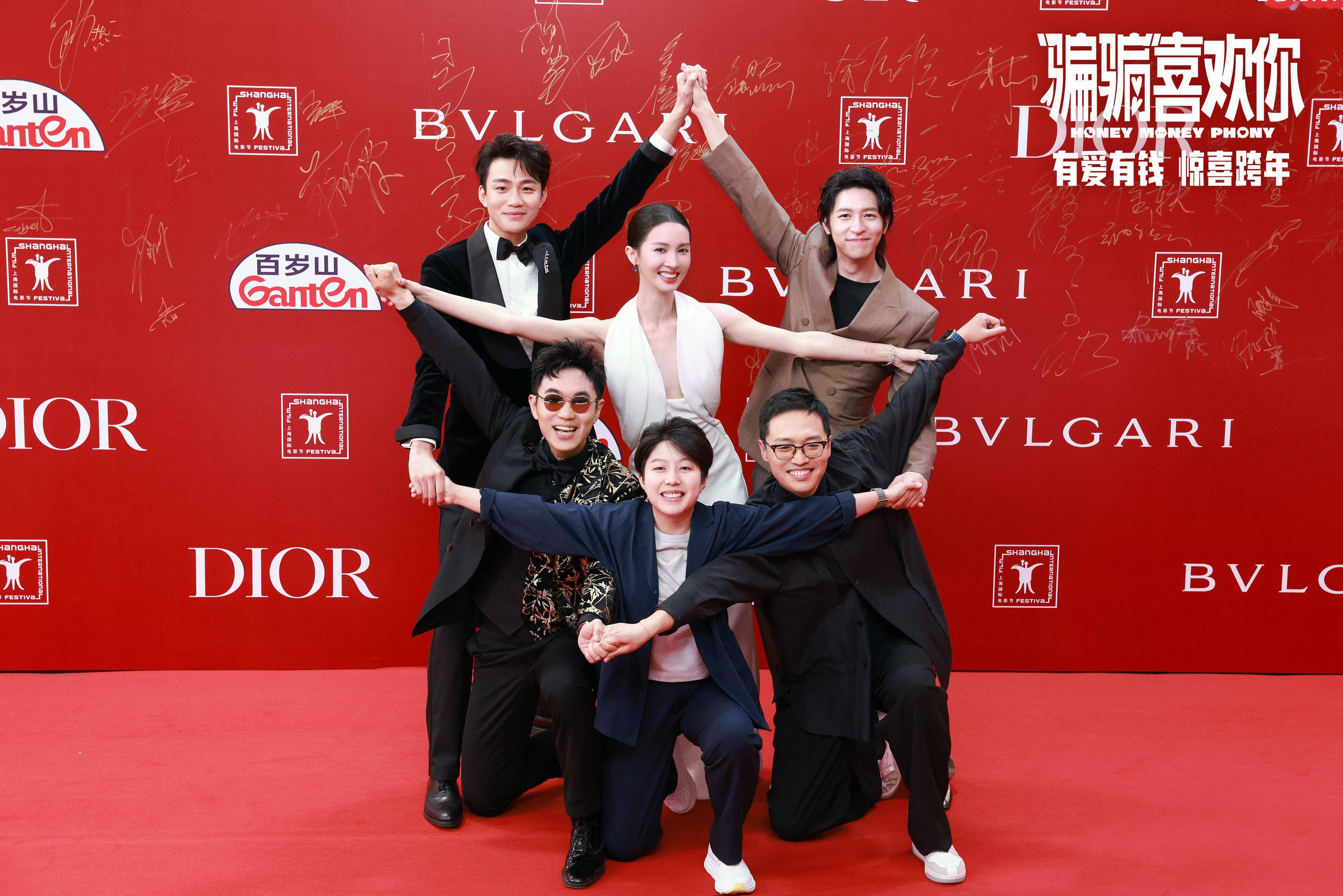 出席上海电影节开幕红毯仪式,是《“骗骗”喜欢你》剧组杀青后的首次公开亮相。盛装出现在红毯上的电影主创,在合影环节集体摆出一个星星POSE,“神还原”游客打卡景点的经典拍照姿势,搞怪又喜感。整个剧组氛围欢脱默契,松弛感满满,将电影中的甜蜜与欢乐带上了红毯,也将现场气氛再次掀至高潮。