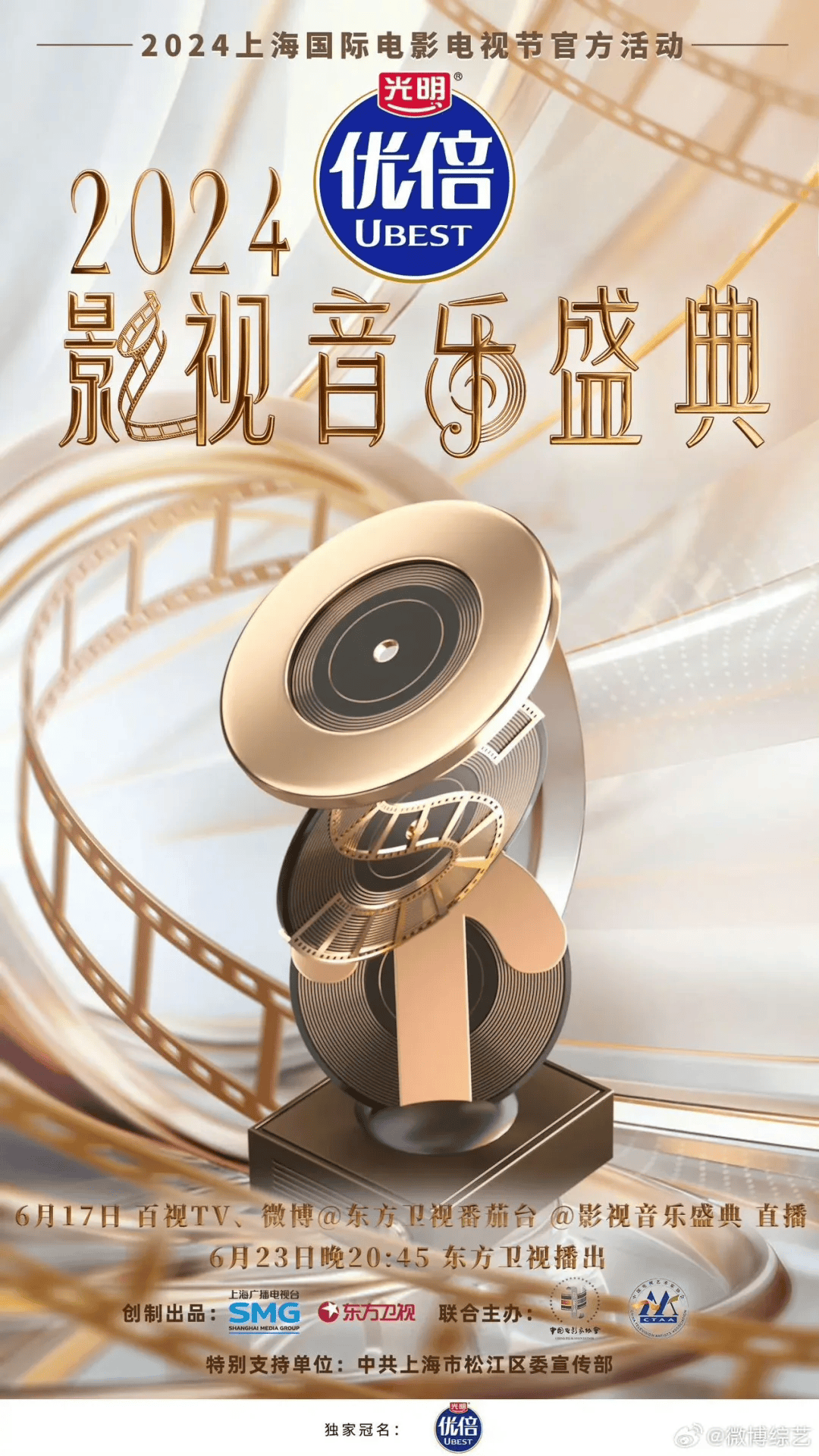 《2024影视音乐盛典》官宣定档6月17日百视TV全程直播,6月23日晚20:45东方卫视播出,用音乐凝结时光的记忆,金曲的旋律即将温暖开唱。