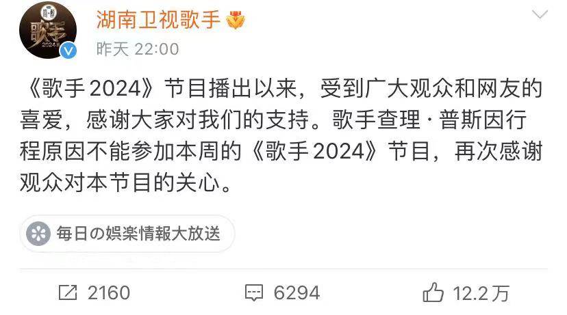 《歌手2024》因为断眉无法现身,导致节目再改赛制,第六期是冲榜赛,尚雯婕和袁娅维向浪姐请假参加歌手节目。