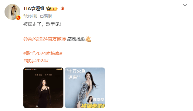 搜狐娱乐讯 6月13日,《歌手2024》正式官宣尚雯婕和袁娅维加入冲榜赛。袁娅维也发文称“被摇走了,歌手见!”,随后还感谢《乘风2024》节目组给自己批假。