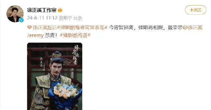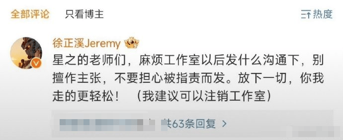 搜狐娱乐讯 6月11日,徐正溪工作室晒出他新剧的杀青照,但图片质量引发粉丝不满。随后,徐正溪本人也评论道:“麻烦工作室以后发什么沟通下,别擅作主张,不要担心被指责而发。放下一切,你我走的更轻松! (我建议可以注销工作室)”。但目前这条评论已经不可见,疑似被删除。