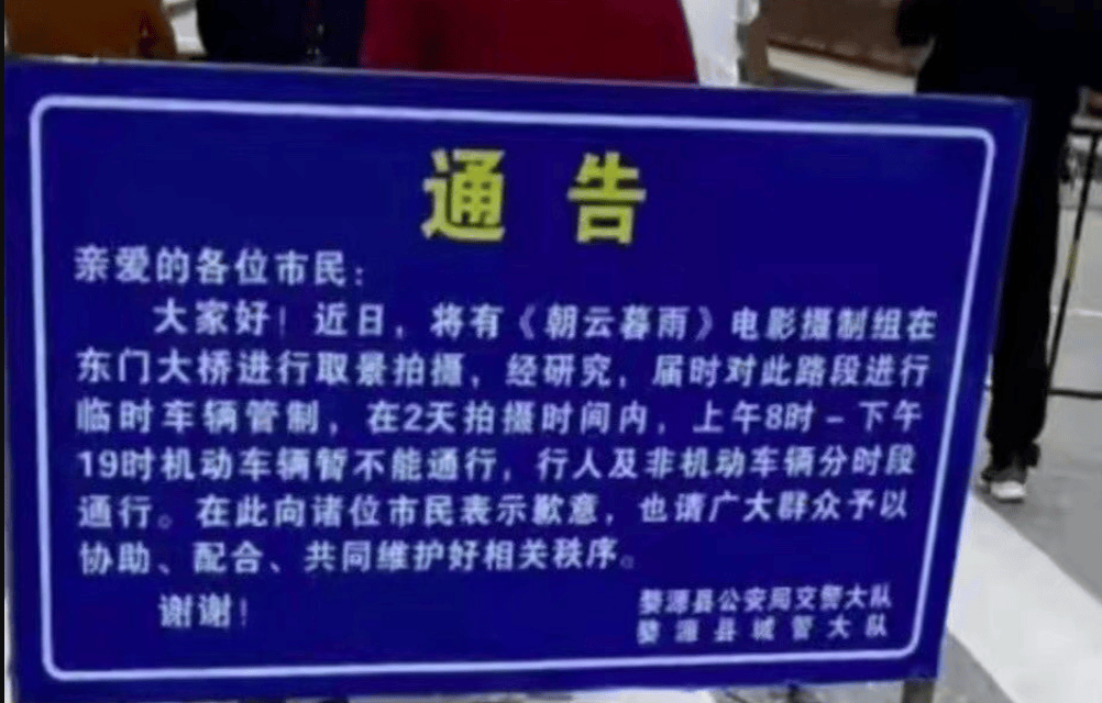 二、朝云暮雨张国立参演的《朝云暮雨》剧组在江西拍戏的时候,专门出了一个通告,表示在上午8点到下午19:00,机动车辆不能通行,这也引发了众多网友的吐槽。