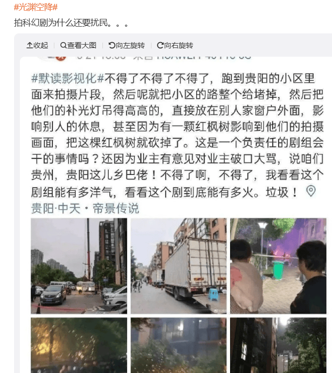 而在2021年5月21日,有一剧组在贵阳一个小区夜间拍戏,发出了极大的噪音,导致小区居民怨声载道。