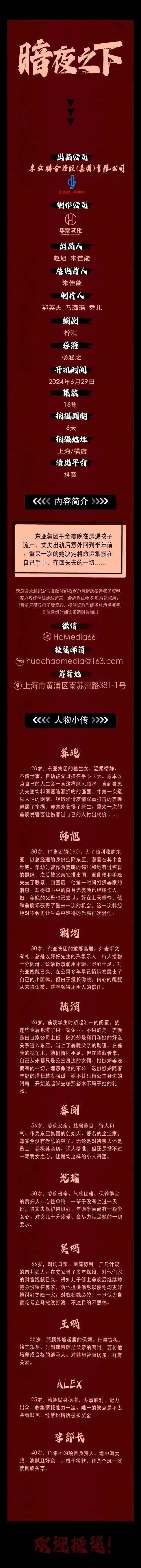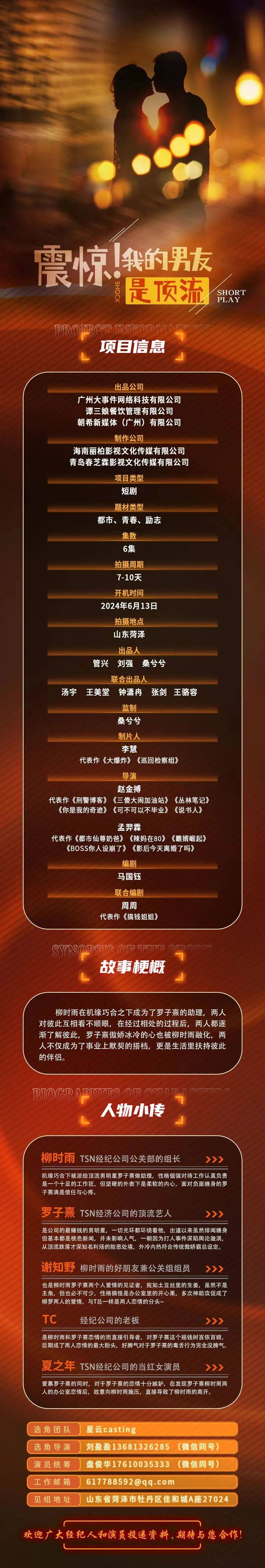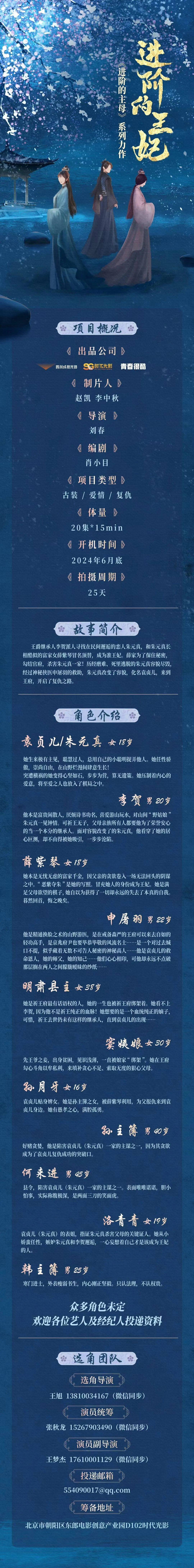 剧中大量角色未定,欢迎各大经纪公司及演员朋友投递资料与我们联络,期待与您合作。
