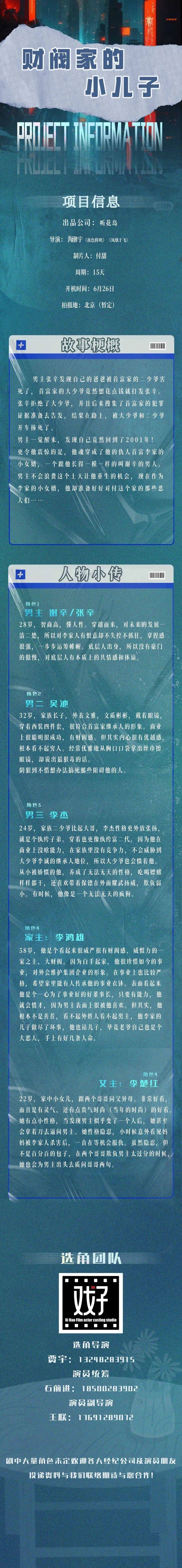 剧中大量角色未定,目前线上收集资料,欢迎投递。