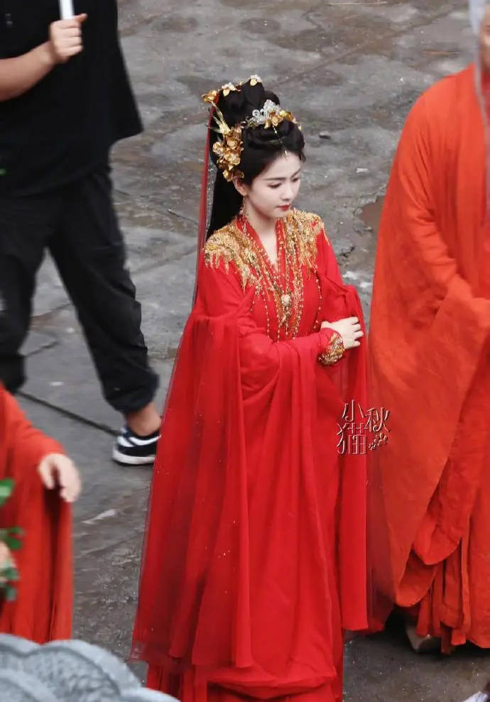 搜狐娱乐讯 6月8日,一张白鹿在片场拍摄新剧的路透图释出,照片中白鹿身穿古风红衣,好像是在拍摄婚礼的戏份,白鹿的头上还插满了金钗银饰,显得十分高贵华丽,古装适配度也很强。