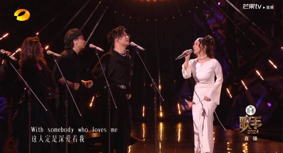 19岁小孩姐凡希亚第三个出场,一首《I Wanna Dance with Somebody(Who Loves Me)》松弛感拉满,轻松拿捏舞台和观众。黄宣第四个出场,给大家带来的是一首爵士风的《手拖手》,极富表演性的舞台加上奔放的唱腔,喜欢的会很喜欢,不喜欢的无法接受,与杭盖乐队处境惊人相识。