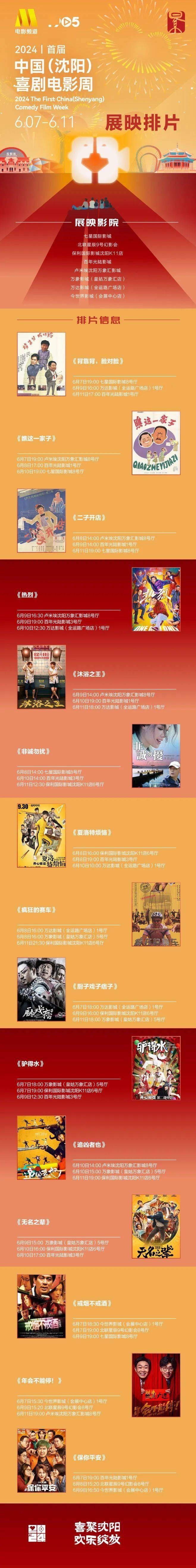 囊括电影频道M观影团带来的《年会不能停!》《保你平安》《背对背,脸对脸》《沐浴之王》4部佳片,《非诚勿扰》《热烈》《夏洛特烦恼》《疯狂的赛车》《厨子戏子痞子》《驴得水》《追凶者也》《无名之辈》《瞧这一家子》《二子开店》《戒烟不戒酒》等15部经典将在沈阳各大影院展映,让欢声笑语传遍东北大地,欢乐之风吹满喜剧之城。