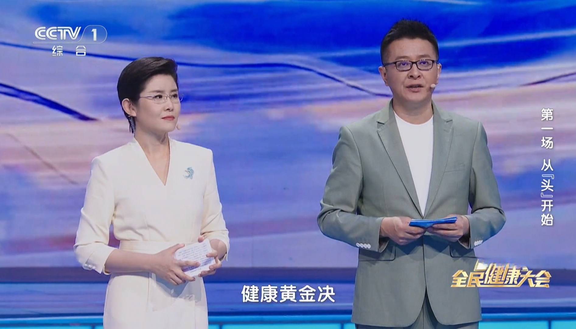《全民健康大会》的主持人,完全出乎所有人的意料。既没有启用“大会”系列御用主持人龙洋,也没有启用青春靓丽的90后、00后新生代,而是让科教频道的张腾岳和新闻频道的王宁搭档主持。社教节目中心制作的节目,能看到主持人张腾岳一点不奇怪,稀罕的是王宁,以新闻评论、人物访谈、专题晚会见长,却破天荒的主持文化综艺节目。