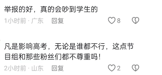 对此,评论区一片叫好,网友们认为这本来就是关键时期,如果扰民影响到考生,被举报并不冤枉。