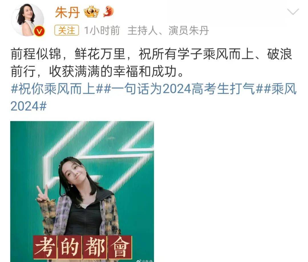 参加了《乘风2024》的朱丹,祝愿所有学子乘风向上、破浪前行,收获满满的幸福和成功。