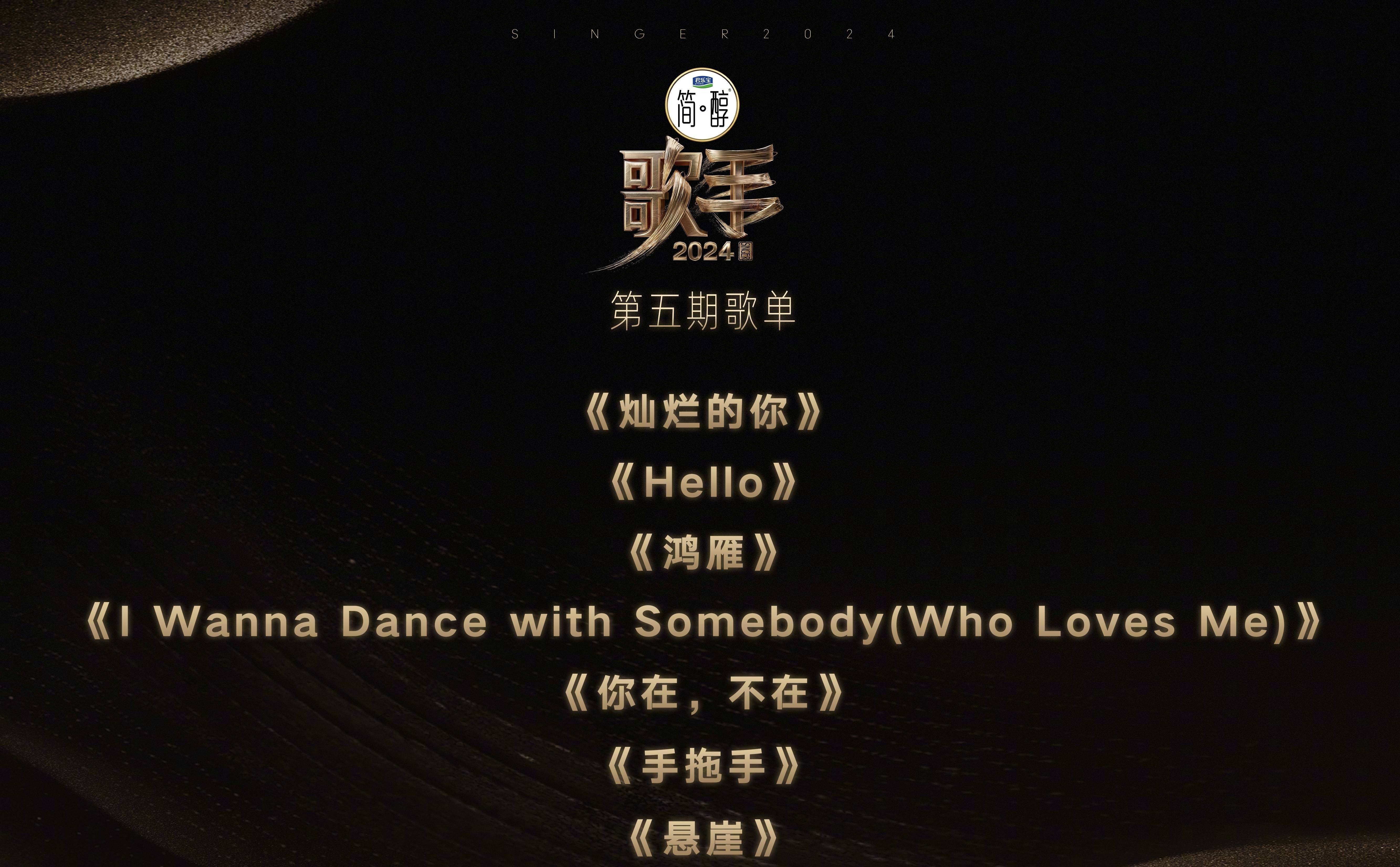 搜狐娱乐讯 6月5日,《歌手2024》发布第五期在线歌手歌单,《灿烂的你》、《Hello》、《鸿雁》、《I Wanna Dance with Somebody(Who Loves Me)》、《你在,不在》、《手拖手》、《悬崖》 。此外,本周节目将迎来两位揭榜歌手Fine乐团和张钰琪。