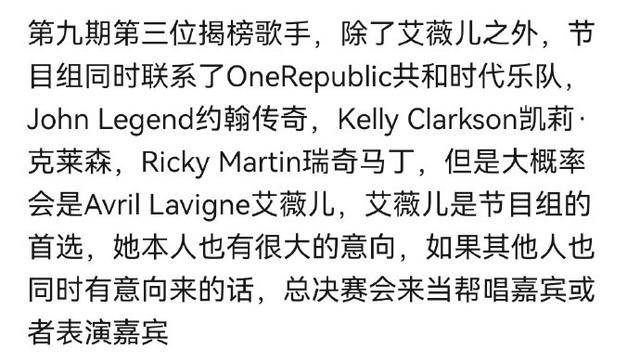 总之,如果艾薇儿这次的真的能来!那她绝对是这一季《歌手》的最大亮点之一。