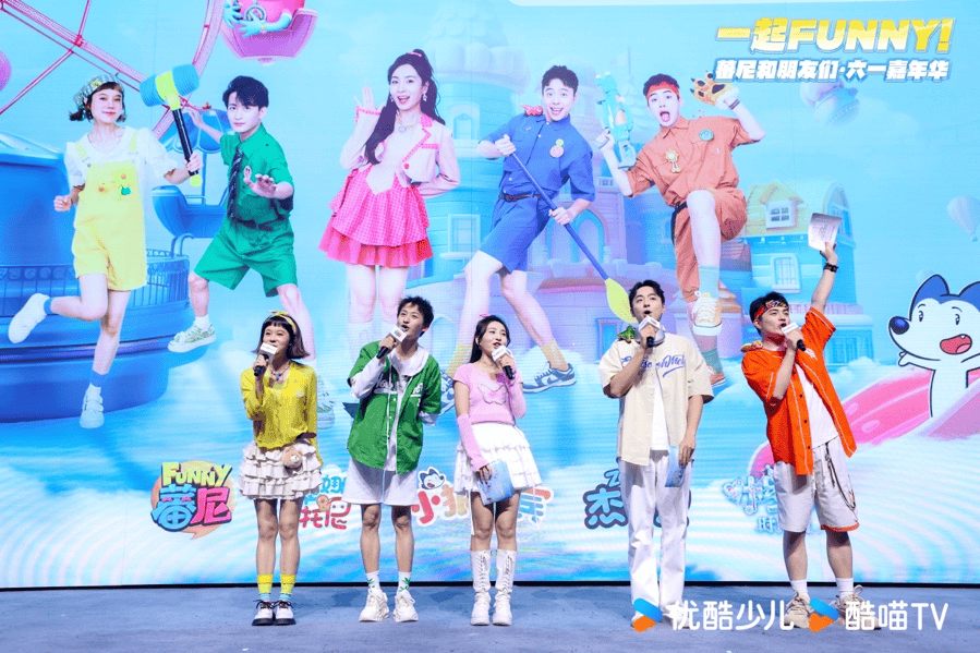 优酷自制少儿真人IP蕃尼的5位主持人带来了《蕃尼DAY》MV首映表演,并与现场孩子们互动,氛围欢快。据了解,六一当天,蕃尼主持人还受邀至广州长隆,陪伴孩子过六一。