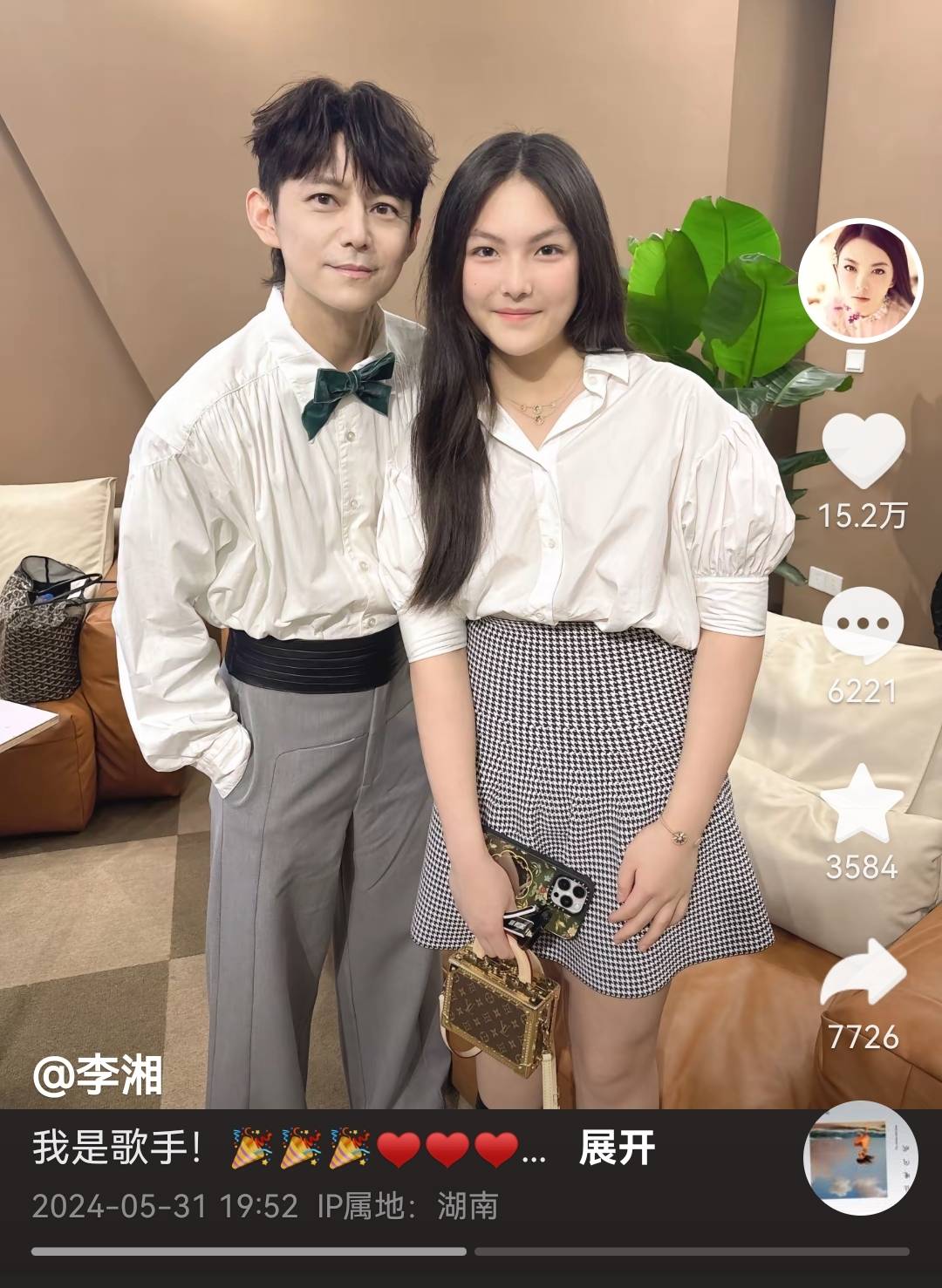 5月31日晚,李湘更新动态并附文“我是歌手”,地址是湖南。看来李湘母女俩是来探班何炅来了。