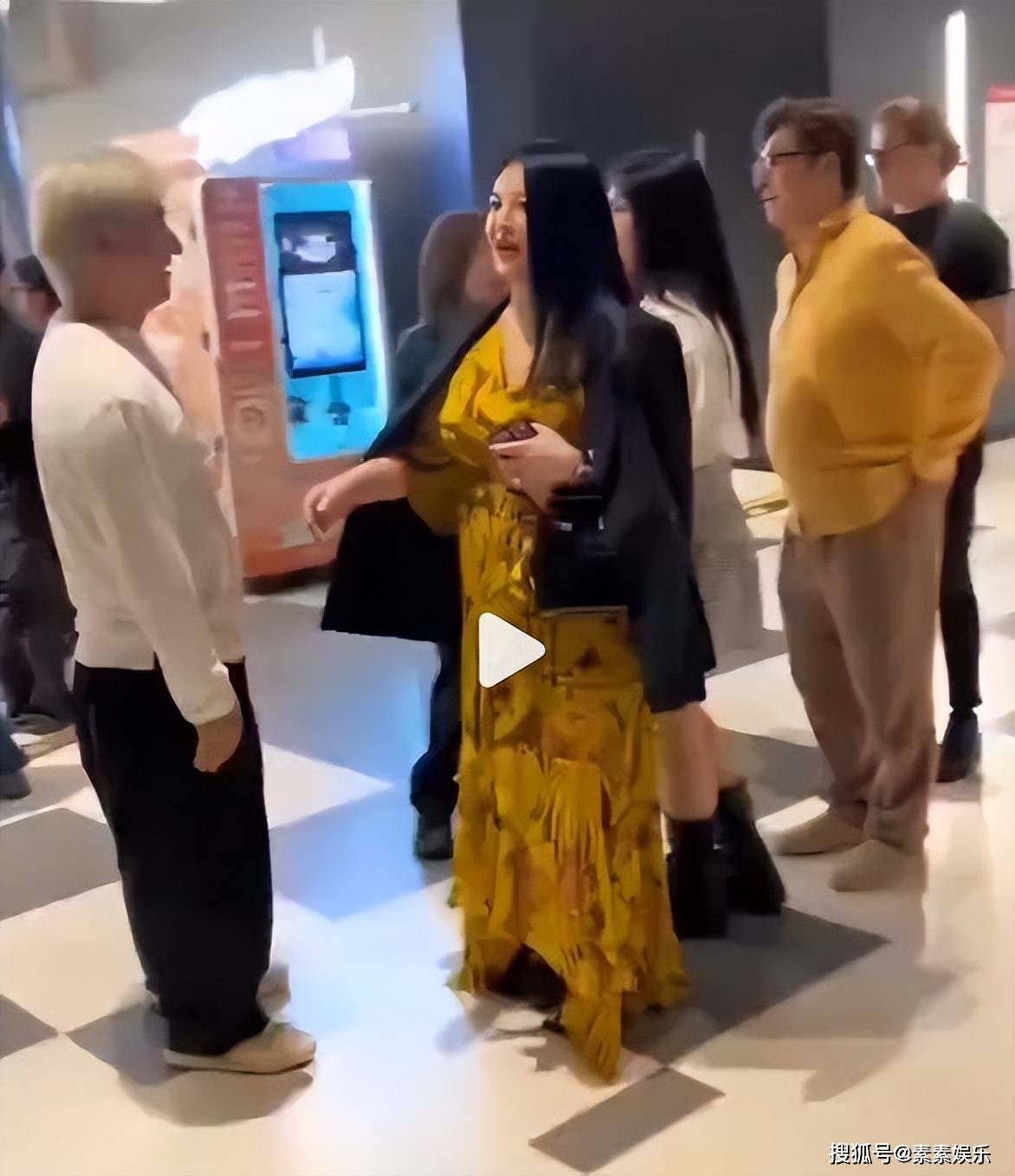 李湘当天穿着贵妇长裙,披着一件短风衣,露面的她第一眼看到的就是洪涛。