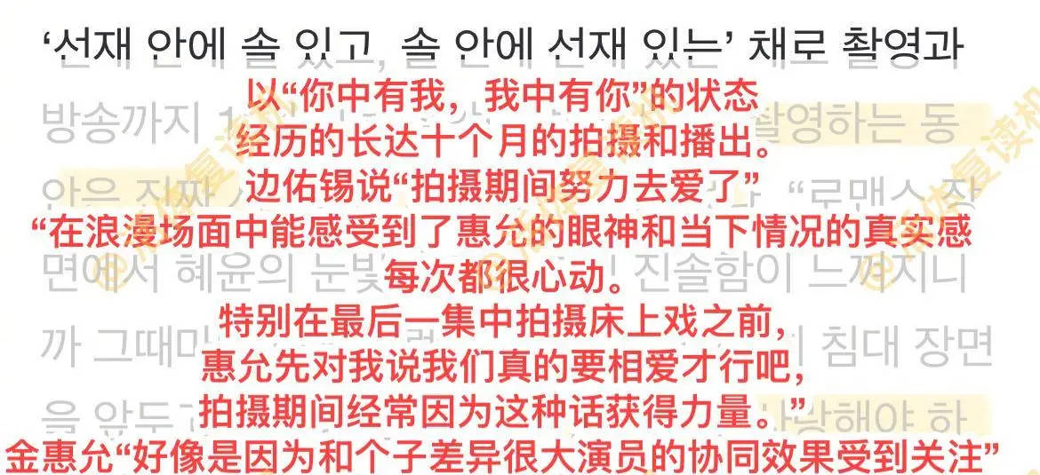 搜狐娱乐讯 5月31日,《背着善宰跑》大结局后,边佑锡金惠允接受采访,提到很多人问他们是不是真的在交往,金惠允说“像是成功以后离开的邻家欧巴,我正看着欧巴远去的背影”,对此边佑锡回应到“什么远去啊,应该说是正在走近的边佑锡吧~”边佑锡透露在拍摄期间,“我真的很努力地去爱了,在浪漫的场面中能感受到惠允的眼神和当时情况的真实感,每当这时我就非常心动。 特别是在最后一集床上戏之前,惠允先对我说'是不是真的要相爱',在拍摄过程中这种话的力量很大。”