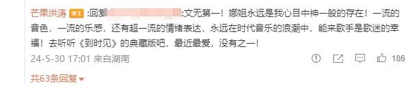 对此,洪涛回复称:“文无第一!娜姐(那英)永远是我心目中神一般的存在!一流的音色,一流的乐感,还有超一流的情绪表达,永远在时代音乐的浪潮中,能来歌手是歌迷的幸福!去听听《到时见》的典藏版吧,最近最爱,没有之一!”