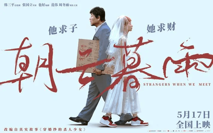 老秦(范伟 饰演)年少时失手第一次进局子,为给母亲治病触犯法律又进去一次,出狱后年过半百的他只想娶妻生子,带着拆迁获得100多万的拆迁款在女监狱门口征婚,恰巧结识刚出狱的24女孩常娟(周冬雨 饰演),相处的时间很短,但彼此的人生早就纠缠在一起……老少的搭配增加了这部电影的荒诞性。《朝云暮雨》5月17号已经上映!