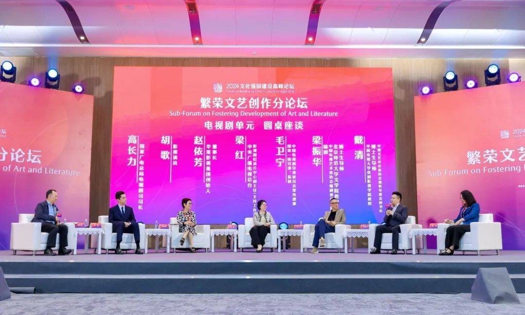 5月24日,2024文化强国建设高峰论坛繁荣文艺创作分论坛在深圳国际会展中心举行。在繁荣文艺创作分论坛电视剧单元中,中宣部文艺局局长刘汉俊出席,中宣部文艺局副局长彭云主持。国家广电总局电视剧司司长高长力发表主旨演讲并主持圆桌座谈,中央广播电视总台影视剧纪录片中心副主任梁红,国家一级导演、监制、中国电视剧导演委员会常务理事毛卫宁,华策影视集团创始人、董事长赵依芳,影视演员胡歌,中国传媒大学戏剧影视学院教授、博士生导师、剧评人戴清参会发言,著名编剧、中国电视艺术家协会编剧专业委员会副会长、北京师范大学文学院教授、博士生导师、青春你好传媒创始人梁振华作为全国编剧的唯一代表出席,就电视剧单元的核心议题“书写中国式现代化的荧屏史诗”分享了独到见解与深刻洞察。