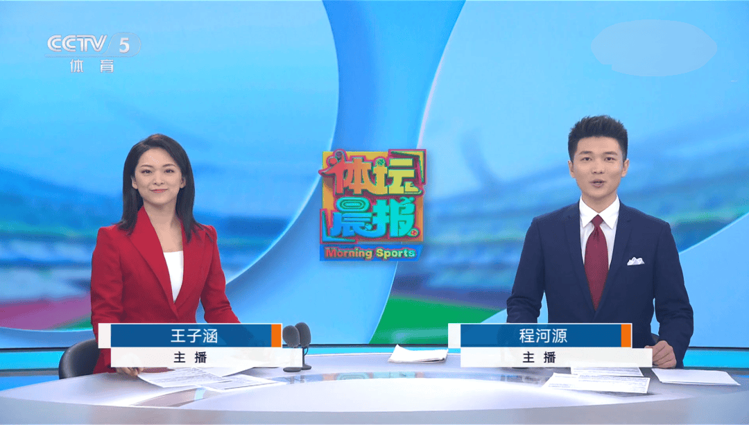 首期演播室主持人是两位全新的面孔王子涵和程河源,而且都是中国传媒大学播音主持专业的学生。王子涵是2021级的播硕连读生,目前硕士研究生还没毕业,程河源是2020级的,刚本科毕业。虽然王子涵和程河源是首次搭档主持新闻节目《体坛晨报》,但两人状态不错,表现优异,台风稳健,都展现出了新生代主持人活泼灵动的主持风格。