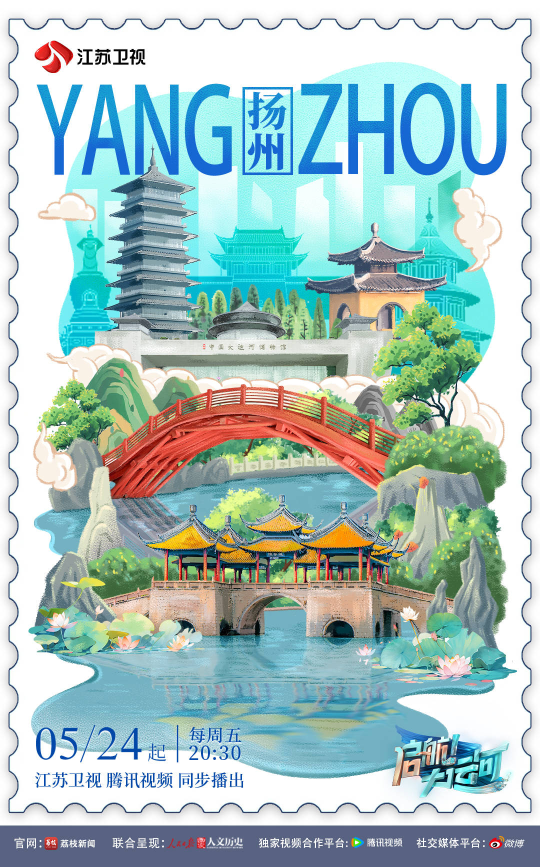 今日20:30,由江苏卫视重磅打造的沉浸式文化探索节目《启航!大运河》即将上线。首期节目,单霁翔、西川、梁周洋、张谨、张鹏等一众嘉宾来到大运河的原点城市——扬州,一起打卡中国大运河沿线的秀丽风光,从历史故事中感受运河精神、探索文化脉络。以此为始,节目将在未来近三个月的时间里,陪伴大家共同开启一场纵贯千年、横跨南北的“运河文化巡游”之旅。