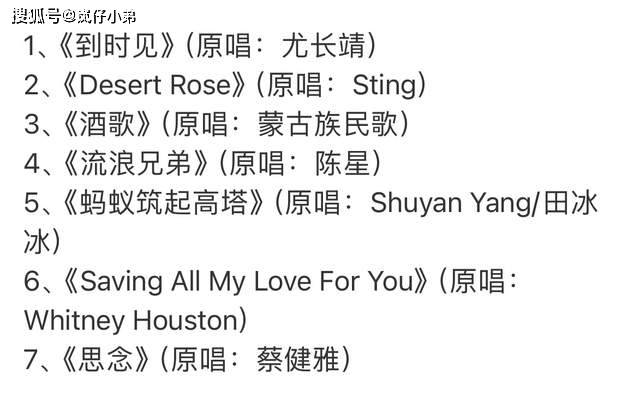 目前,已经有消息公布了第三期的歌单内容,虽然有很多不同版本,但这一版本则是真实性最高,分别是: