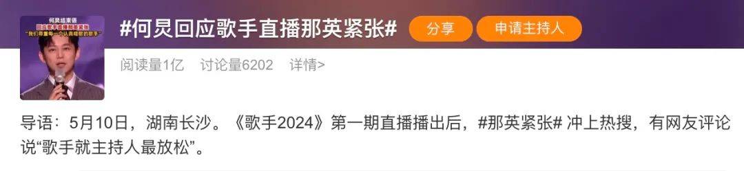 其实所有综艺营销都是两股力量的合力推动,先是节目方需提前预估爆点买热搜词条,再是网友玩梗热情决定热搜能冲到什么位置。直播当晚 #那英 紧张# 的热搜就是如此操盘,本就是内娱瓜王的英子,当然是《歌手》导演组提前预判好可能会爆的营销对象,而何炅当晚直播临场发挥cue到这条热搜,则成了助燃那英相关话题的又一把猛火。