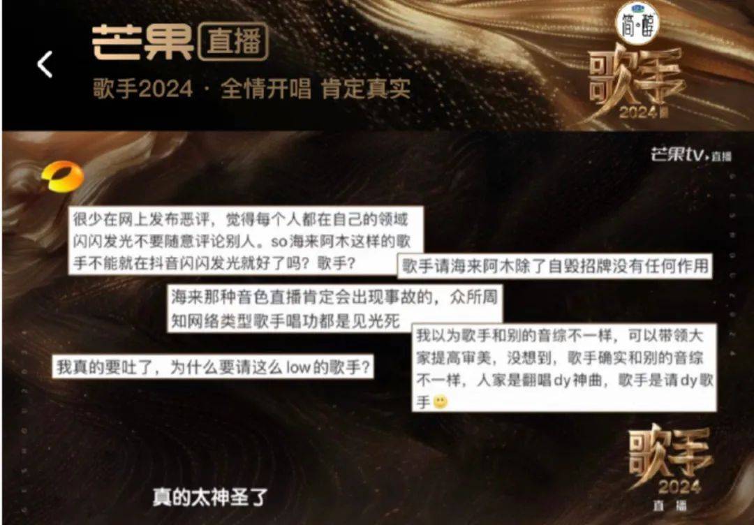 比如节目则在首期主动cue起了邀约“抖音歌手”海来阿木太low的舆情争议,并借音乐总监陈建骐之口给出了“好音乐没有不同”的专业回应。诸如此类节目组与网友同频共振、响应观众关注点产出热腾腾内容的主动服务意识,这是芒果综艺很难被看见却弥足珍贵的创制技巧。